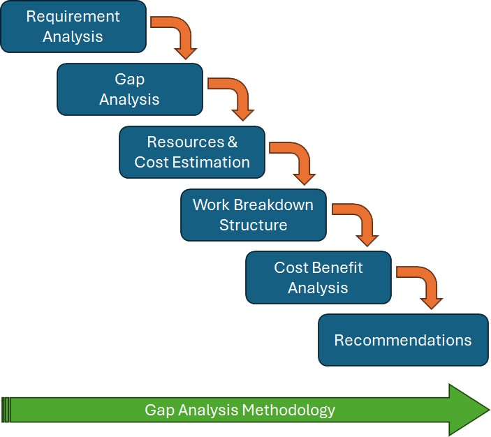 Using the result from the requirement analysis, source code analysis and architecture flow comparison, we will produce a gap analysis report.